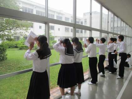 5/7 寄木モザイク 公開日 2018/05/07 更新日 2018/05/07 校長より 3年A組の美術です。 寄木モザイクの制作です。 窓ガラスに向かって、何やら黙々と描いています。 ウッドシートに転写するために、下絵の裏からデザインを描いているのです。 見せてもらうとどの作品もうまい! どんな寄木ができるのだろうか? いいね(0)