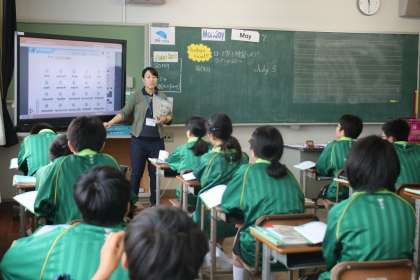 日付の言い方について、全員で発音しながら勉強していました。数字だけを言うのではなく、th(ス)をつけて読むのがポイントですね。自分の誕生日は英語で言えるようになったかな?