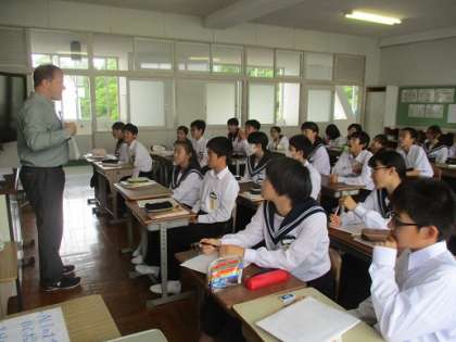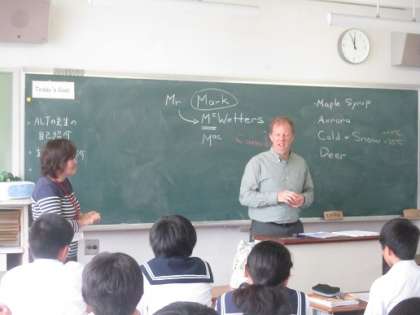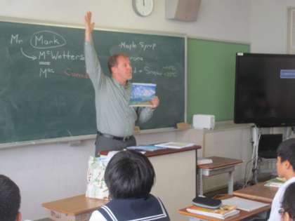 5/8 ALTのミクウォターズ先生 公開日 2018/05/08 更新日 2018/05/08 校長より 今年度初めてのALTの授業がありました。 今年からミクウォターズ・マーク先生が教えてくれます。 2年B組の授業です。 カナダ出身のミクウォターズ先生は、自己紹介の中でカナダの写真を見せながら子どもたちに話をしてくれました。 軽快なテンポで、表情豊かに話してくれるミクウォターズ先生の授業は楽しいです。 これからの授業がとても楽しみになりました。 いいね(0)