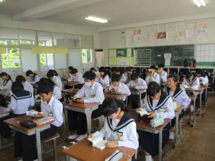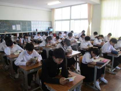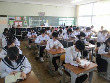 5/11 2年生の朝読書 公開日 2018/05/11 更新日 2018/05/11 校長より 2年生の朝読書の様子です。 A組(上)、B組(中)、C組(下)です。 (DとEの写真がなくてすみません。) シ〜ン。 ページをめくる音しか聞こえません。 1・3年と同じく2年生も静かに読書します。 「読書の場面を撮らせてね。」とお願いすると、必ず2〜3人は恥ずかしそうな顔をします。 邪魔をしてごめんなさいね。 いいね(0)