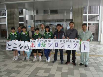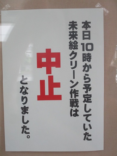 市役所前に設置してある未来絵のクリーン作戦の日でしたが、あいにくの雨で中止となりました。