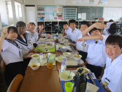 5/25 給食訪問です!その1 公開日 2018/05/25 更新日 2018/05/25 校長より 1年A組の給食です。 テストが終わって思わずニッコリ。 できがよくてもよくなくても、「テスト」があるだけで心は重いですよね。 終わった後の給食は格別です! いいね(0)
