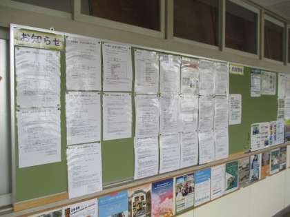 高校の体験入学の案内がたくさん掲示してあります。