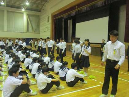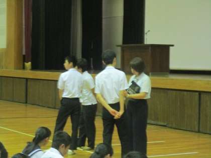 8時15分の始業のチャイムが鳴ると、級長が男女別に確認します。