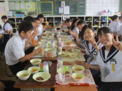 6/11 3Aの給食で〜す! 公開日 2018/06/11 更新日 2018/06/11 校長より 3年A組の給食訪問です。 みんな和気あいあいで食べました。 みんなやたらに元気がよく、愛嬌がありますね。 後ろ向きでピースするおもしろい男子は誰だ? いいね(0)