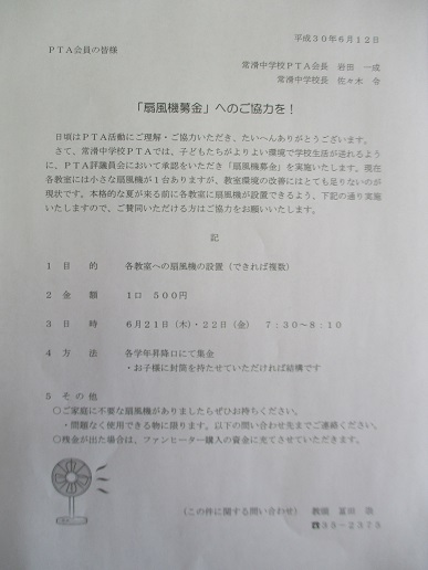 昨日、「扇風機募金」の案内を配布しました。