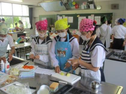 6/14 2E カレー作り 公開日 2018/06/14 更新日 2018/06/14 校長より 2年E組の家庭科です。 2年生最後のカレー作りでした。 男の子に聞きました。 T:「家でもお米をといだりするの?」 S:「全然やりません。」 でもお米をとぐ手つきが慣れているように見えました。 女の子の分担は安心して見ていられます。 いいね(0)