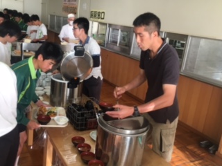 バイキングでは、素早く準備ができるように、先生たちが一部手伝います。