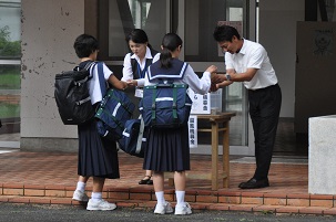 PTAの役員さんたちが、朝早くから昇降口に立ってくれました。