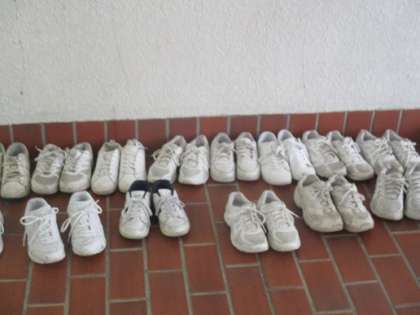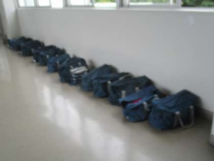 バレー部女子が試合を行っている体育館の外に置いてあったカバンとくつです。