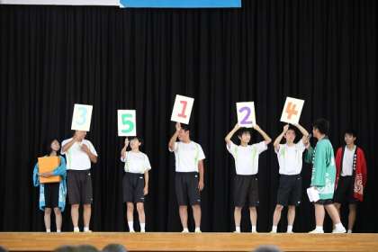 7/9 体育祭 色決め抽選会1 公開日 2018/07/09 更新日 2018/07/09 校長より 体育祭の色決め抽選会が、朝会の後行われました。 まずは各学年ごとに学級代表が壇上に上がり、ジャンケンをします。 勝った順に、箱の中ら番号の書いた札を取ります。 各学年ちょうど5クラスずつですので、同じ番号を引いたクラスが同じチームになります。 いいね(0)