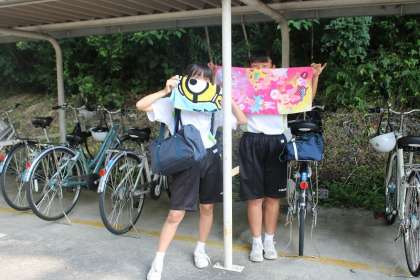 生徒達は毎日この暑い中自転車でがんばって