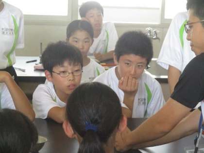 子どもたちは暑い中でしたが、浦山先生の操作をしっかりと見ていました。