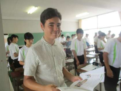 日本語はあまりできませんが、クラスの友達が先生の指示を何とか伝えます。
