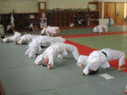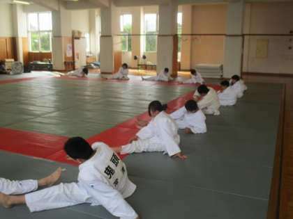 7/11 がんばれ、柔道部! 公開日 2018/07/11 更新日 2018/07/11 校長より 柔道部の練習の様子です。 全員で輪になり、準備運動を行っていました。 柔道部は準備運動をしっかりとやります。 体中の筋肉を十分にほぐします。 この後の練習はハードなので、けがをしないようにします。 3年生は平気ですが、1年生は準備運動でくたくたになっていました。 がんばれ、柔道部! いいね(0)