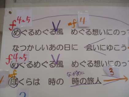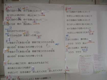 3年B組の教室には、合唱曲の歌詞が貼ってあります。