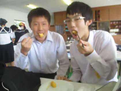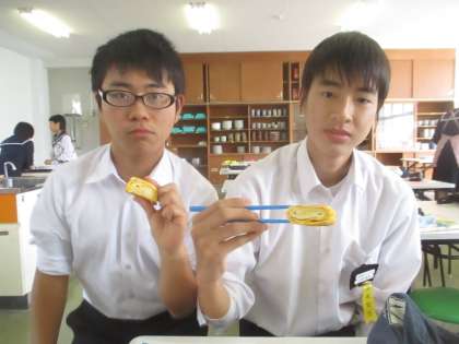 卵焼きを作った後は、試食します。