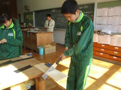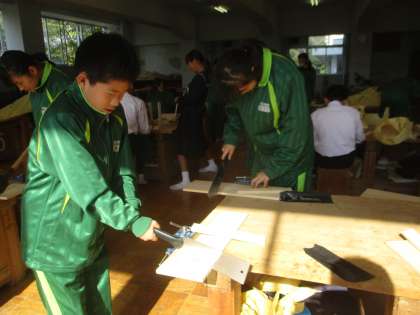 10/29 木を切る 公開日 2018/10/29 更新日 2018/10/29 校長より 1年E組の技術です。 木材を使って、マガジンラックや本立てを作成していました。 今日は木を切る過程です。 子どもたちは、のこぎりを使って木を切る経験があまりありません。 ちょっとたどたどしい切り方です。 かつては、遊びの中でのこぎりを使うことはよくあったのですが・・・。 でも子どもたちは「自分で作る」ことを喜んでいるようにも見えました。 いいね(0)