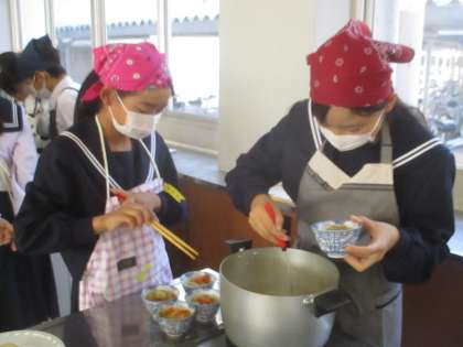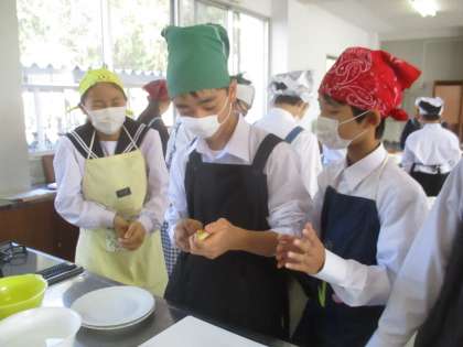 1年D組の家庭科です。