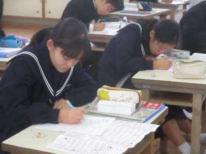 11/6 印面を考える 公開日 2018/11/06 更新日 2018/11/06 校長より 2年A組の美術です。 「篆刻(てんこく)」の作成です。 今日は印面のデザインを考えていました。 印面は自分の名前をデザインします。 オリジナルのデザインでないといけません。 アニメやキャラクターはだめです。 おもしろいデザインがいっぱいです! 写真(下)は昨年(現3年生)の作品です。 周りも自分で削るのですよ。 うまいですね〜。 いいね(0)
