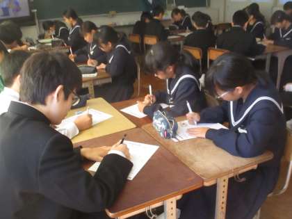 11/15 聞き取る力 公開日 2018/11/15 更新日 2018/11/15 校長より 1年C組の英語です。 電子黒板で見せたアニメの会話を聞き取る練習でした。 集中して聞きますが、一回目ではなかなか聞き取れません。 二回、三回と聞くうちに、かなり分かるようになりました。 「読む、書く」だけでなく、これからは「話す、聞く」が必要とされる時代です。 授業もこれからに合わせて、以前とは進化しています。 いいね(0)