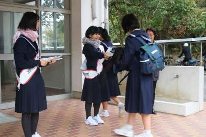 11/22 人権擁護委員チラシ配り 公開日 2018/11/22 更新日 2018/11/22 お知らせ(生徒会活動、委員会、部活動など) 今日は朝の登校時間に人権擁護委員さんがチラシ配りを行いました。 人権週間が近いので、そのための活動です。 「よろしくお願いします!」という大きな声と、6人の 素敵な笑顔でチラシを受け取った生徒の皆さんも朝から さわやかな気持ちになったのではないでしょうか、、、! いいね(0)