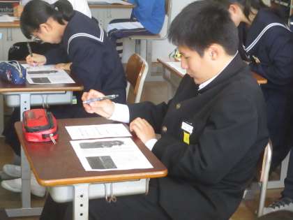 11/22 まず自分の考えを 公開日 2018/11/22 更新日 2018/11/22 校長より 2年E組の道徳です。 教室に入った時は、まず自分の考えを書く場面でした。 「自分はどう思うか?」 「自分はどう考えるか?」 子どもたちは真剣に考えていました。 まずここからです。 この後、自分の考えをクラスに伝え、どんな話し合いになったのか? 最後まで見ることができなくて残念です。 いいね(0)
