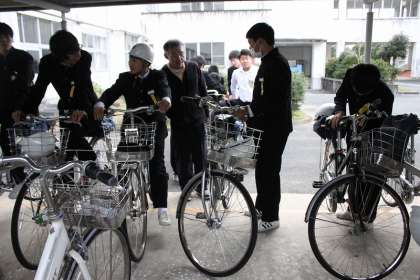 11月28日 自転車点検 公開日 2018/11/28 更新日 2018/11/28 お知らせ(生徒会活動、委員会、部活動など) 今日は、下校時に自転車点検が行われました。生活交通委員が、1台ずつ、タイヤの空気がほどよく入っているか、サドルの高さが危険ではないか等を点検します。特に最近多いのが、足が付かないほど高くしているサドル。とっさにブレーキをかけて止まるときに、高すぎるサドルはとても危険です。これからも、安全な自転車に乗って、交通マナーを守って登校してください。(いな) いいね(0)