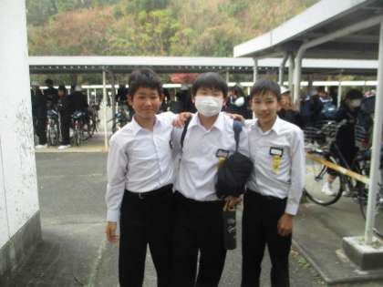 11/28 自転車置き場で 公開日 2018/11/28 更新日 2018/11/28 校長より 自転車点検を待っている1年生男子の3人組です。 点検の様子を撮りに来ましたが、近くでうろうろしています。 カメラを向けると、いい顔をしてくれました。 テストはできたかな? いいね(0)