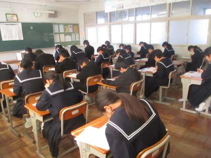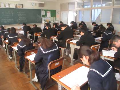 11/29 背中が語る2 公開日 2018/11/29 更新日 2018/11/29 校長より テストも2日目。 そろそろ疲れも出る頃か。 背中に向けて声をかけたくなる。 「明日が終われば、クリスマスと正月が待ってるぞ!」と。 1C(上)、2D(下) いいね(0)