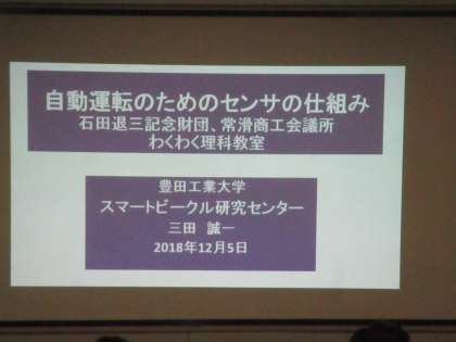 12/6 1年 わくわく理科教室 公開日 2018/12/06 更新日 2018/12/06 校長より 昨日の行事ですが、1年生が「わくわく理科教室」を実施しました。 石田退三記念財団の主催で、子どもたちにものつくりの楽しさを教える目的で行われました。 今回は「自動運転」についてです。 実際に自動運転の研究に携わっている大学の先生のお話です。 子どもたちには少し難しい内容だったかもしれませんが、これからの社会に必要な最先端のお話でした。 何を感じてくれたでしょうか? いいね(0)