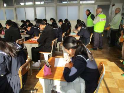1/16 リスニング 公開日 2019/01/16 更新日 2019/01/16 校長より 3年A組の国語です。 リスニングの学習をしていました。 放送から流れる話を正しく聞き取って問題に答えます。 3年生は明日から学年末テスト。 もうしばらく憂鬱な日々が続きますが、必ず太陽は昇ります! いいね(0)