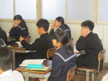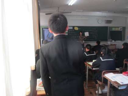 先生が教科書に載っている手紙を指し、