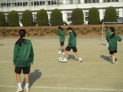 1/23 女子サッカー 公開日 2019/01/23 更新日 2019/01/23 校長より 1年AD組の女子体育です。 今日はサッカーです。 天気がとてもいい。 風もほとんどありません。 空気は冷たいですが、子どもたちは気持ちよく体を動かします。 サッカーの経験がない子がほとんどです。 ボールを扱うというより、ボールに扱われているような感じです。 でも、とても楽しそうでした! いいね(0)
