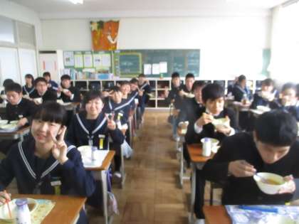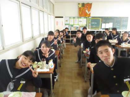 1/24 美味しい顔がいっぱい! 公開日 2019/01/24 更新日 2019/01/24 校長より 3年A組の給食です。 現在、インフル対策として全校が前向き給食です。 変な表現ですが、美味しい顔がいっぱいです! そう言いたくなるくらい、美味しそうに、いい笑顔で食べています。 真ん中の写真の右前の男の子は、写真を撮る前は「どんどん撮ってください!」と言っていましたが、いざ撮るとなると食べ始めます。 下を向いて、黙々と食べるこの表情はわざとですよ! いいね(0)