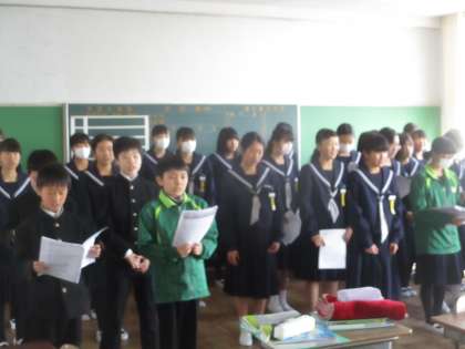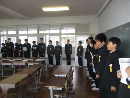 2/4 1年 歌練習 公開日 2019/02/04 更新日 2019/02/04 校長より 昼放課、1年生は3年生を送る会の歌練習を行っています。 歌は「明日はきっといい日になる」です。 3つのパートに分かれて練習します。 時間になったら自分たちで並びます。 自分たちで曲をかけます。 そして歌い始めます。 先生は最低限の準備や指導や段取りはしますが、やるのは生徒たちです。 いいね(0)