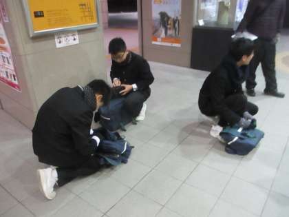 駅前でカバンの中を確認し始めました。