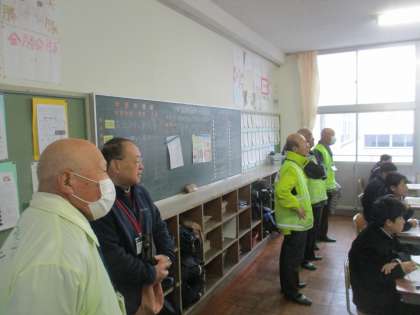 見守り隊の皆さんは、教室に入るときに一礼します。