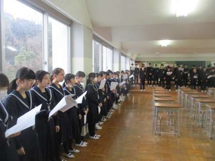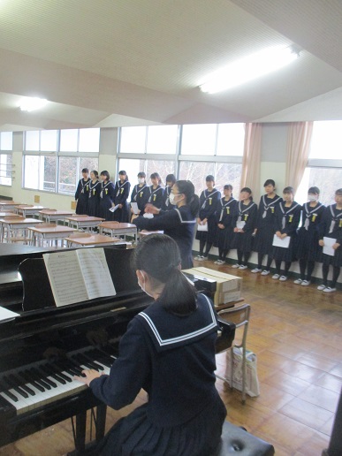 2/6 3年 今日の歌練習 公開日 2019/02/06 更新日 2019/02/06 校長より 入試で半分いませんが、3送会と卒業式の歌練習を行いました。 指揮者も伴奏者も生徒が行います。 完成度はまだまだですが、子どもたちは今日もがんばりました! いいね(0)