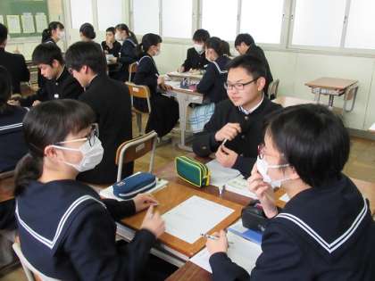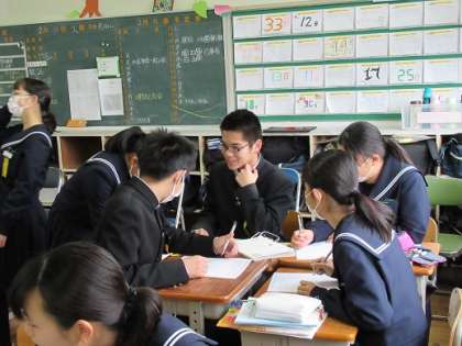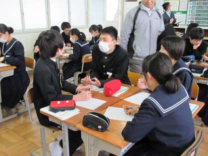 2/19 話し合う 公開日 2019/02/19 更新日 2019/02/19 校長より 3年B組の数学です。 「グループで話し合ってみて。」 先生がこう伝えると、子どもたちはすぐに話し合いを始めます。 男女関係なく、誰とでも自然に意見交換できます。 そんなB組も、あと少しで卒業です。 いいね(0)