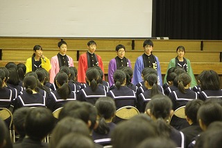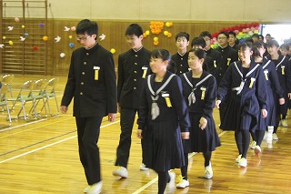2月22日 3年生を送る会 その1 公開日 2019/02/22 更新日 2019/02/22 お知らせ(生徒会活動、委員会、部活動など) 今日は、在校生が3年生への感謝の気持ちを伝える「3年生を送る会」がありました。 きれいに飾られた体育館に、3年生がちょっぴりはずかしそうな顔をして入場してきます。 いいね(0)
