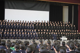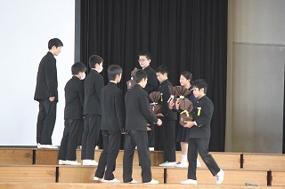 2月22日 3年生を送る会 その4 公開日 2019/02/22 更新日 2019/02/22 お知らせ(生徒会活動、委員会、部活動など) G組からは、3年間の合唱コンクールの歌を収めたCDのプレゼントをもらいました。 3年生も1、2年生に向けて歌います。ものすごい迫力です。さすが3年生!! いいね(0)