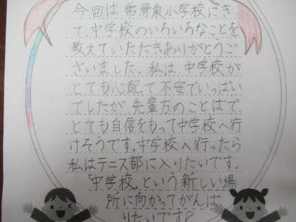 常滑東小学校の6年生から、「先輩の話を聞く会」のお礼が届きました。
