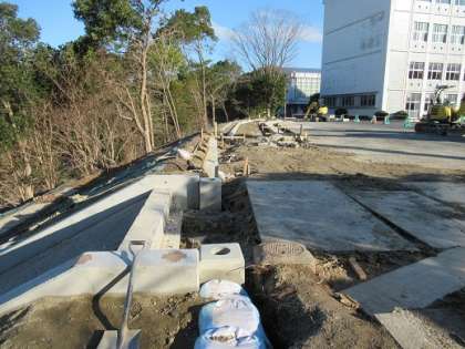 3/8 工事の様子です! 公開日 2019/03/08 更新日 2019/03/08 校長より 現在の階段工事の進行状況です。 ずいぶん進んできました。 階段横のコンクリ部分ができています。 歩道も形が見えてきました。 最近は雨も多いので、業者の方も大変そうです。 いいね(0)