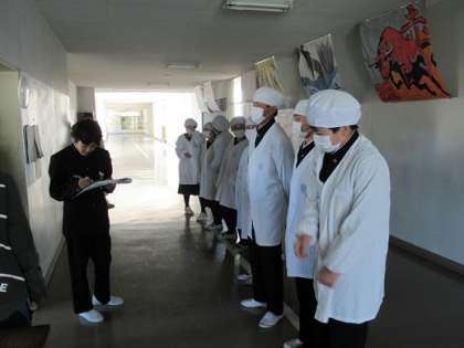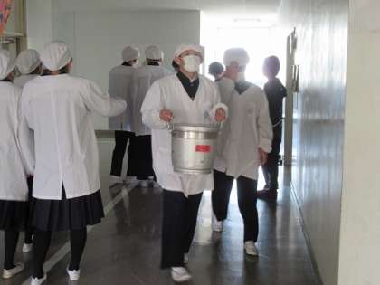 3/8 活躍しています! 公開日 2019/03/08 更新日 2019/03/08 校長より 2年生の給食あれこれ風景です。 4時間目が終わると給食委員の出番です。 各クラスの給食当番を、配膳室前で待ちかまえます。 「爪チェック!髪の毛チェック!白衣よし!消毒OK!] がんばっていますね、給食委員さん! いいね(0)