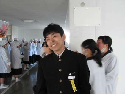 (上)食器を運ぶ当番の様子を見ていたら、男の子が突然現れました。