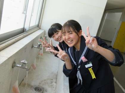 (下)手洗をしっかりとする女の子二人。
