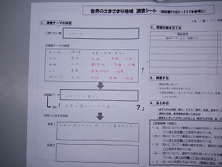 3月8日 1年生社会の授業 公開日 2019/03/08 更新日 2019/03/08 お知らせ(生徒会活動、委員会、部活動など) 1年生の社会の授業がコンピュータールームで行われていました。学習課題は「世界のさまざまな地域を調べよう」です。自分の興味のある国について、調査テーマを決めていきます。自分で情報を集めてまとめていくことも立派な勉強です。3枚目の写真は、「上手にテーマを決めているね」と先生に紹介されていた子のワークシートです。 (いし) いいね(0)