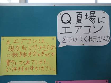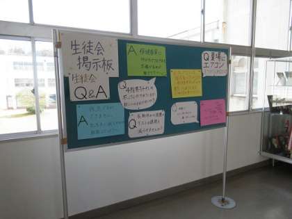 生徒会掲示板に生徒から寄せられた質問と回答がありました。