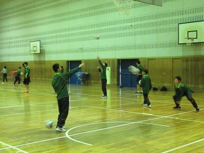男子バレー部の朝練習です。